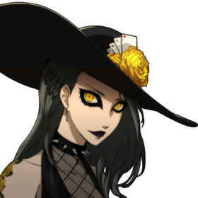 - P5R中,二阶段战斗转为使用轮盘决定战斗属性(全属性+半血后的万能属性),决定后该属性相性变为无效,除可克制该属性的属性攻击外,其余皆为耐性。同时若队伍中有弱点为该属性的成员,冴会固定攻击该成员。万能属性下,无弱点无属性相性的耐性,使用物理、枪击和万能属性技能“狂战士之舞”进行全体攻击。