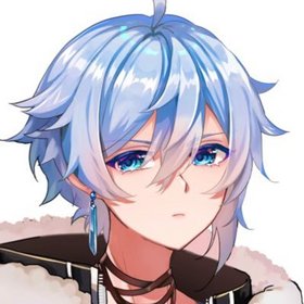 - 虚拟形象如头像,带有耳坠和呆毛的白发蓝瞳男子(以前是灰瞳)。