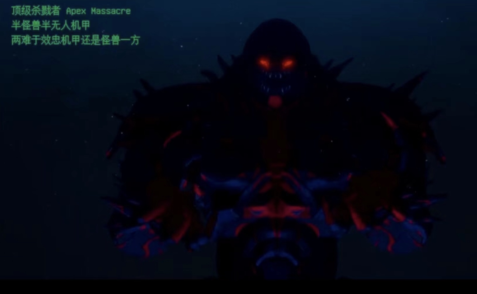 曾是起义战争中量产于2035年的一台无人机甲。在全体无人机甲遭到怪兽感染时,PPDC利用回路反馈炸毁了他们,仅有约二十三台幸存。其中一台机甲进行了进一步变异,被称为阿佩克斯屠杀者,意为顶级杀戮者。阿佩克斯不效忠于机甲或是怪兽中的任意一方,而是遵循自己的意志猎杀任何对它有威胁的生物。似乎把人形怪兽“男孩”视为重要的保护对象,甚至为了更好地保护他而帮助过本是敌人的阿特拉斯歼灭者给失去右臂的阿特拉斯提供新的配备了武器的右臂,让她有了自保能力。